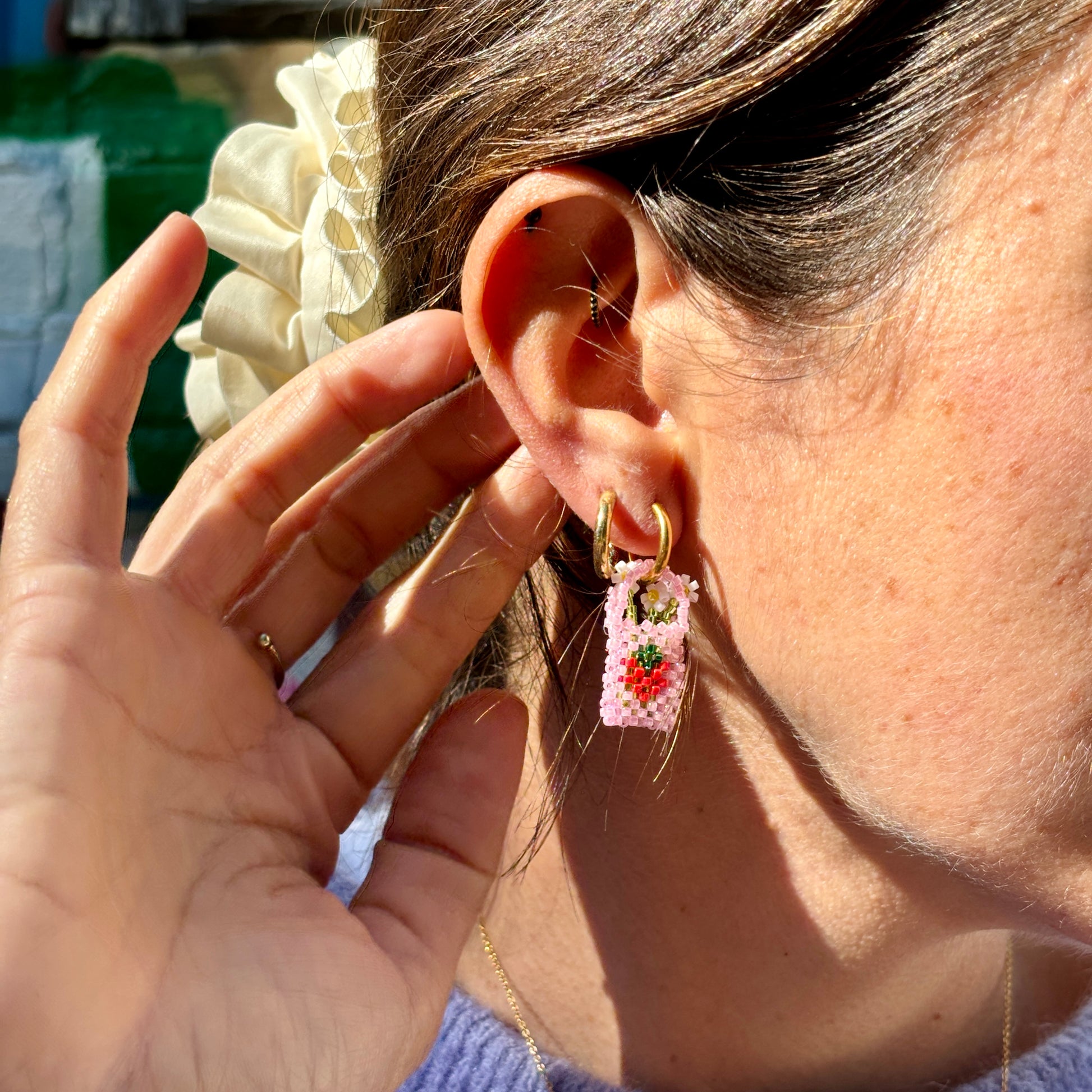 Matériaux : perles Miyuki (perles en verre japonaises), fil Nylon, créole en acier inoxydable doré à l'or fin 18K.