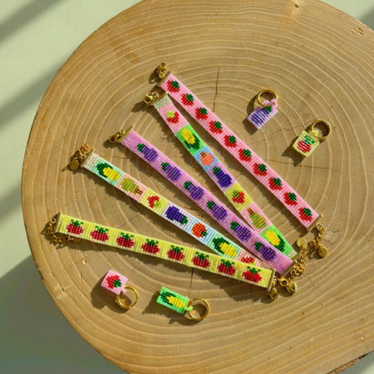Les petits fruits et légumes du Hiiri Market se déclinent maintenant sous forme de tissages. Je puise mon inspiration de mon voyage au Pérou, où les tissus tissés à la main remplissent les paysages de motifs et de couleurs incroyables !