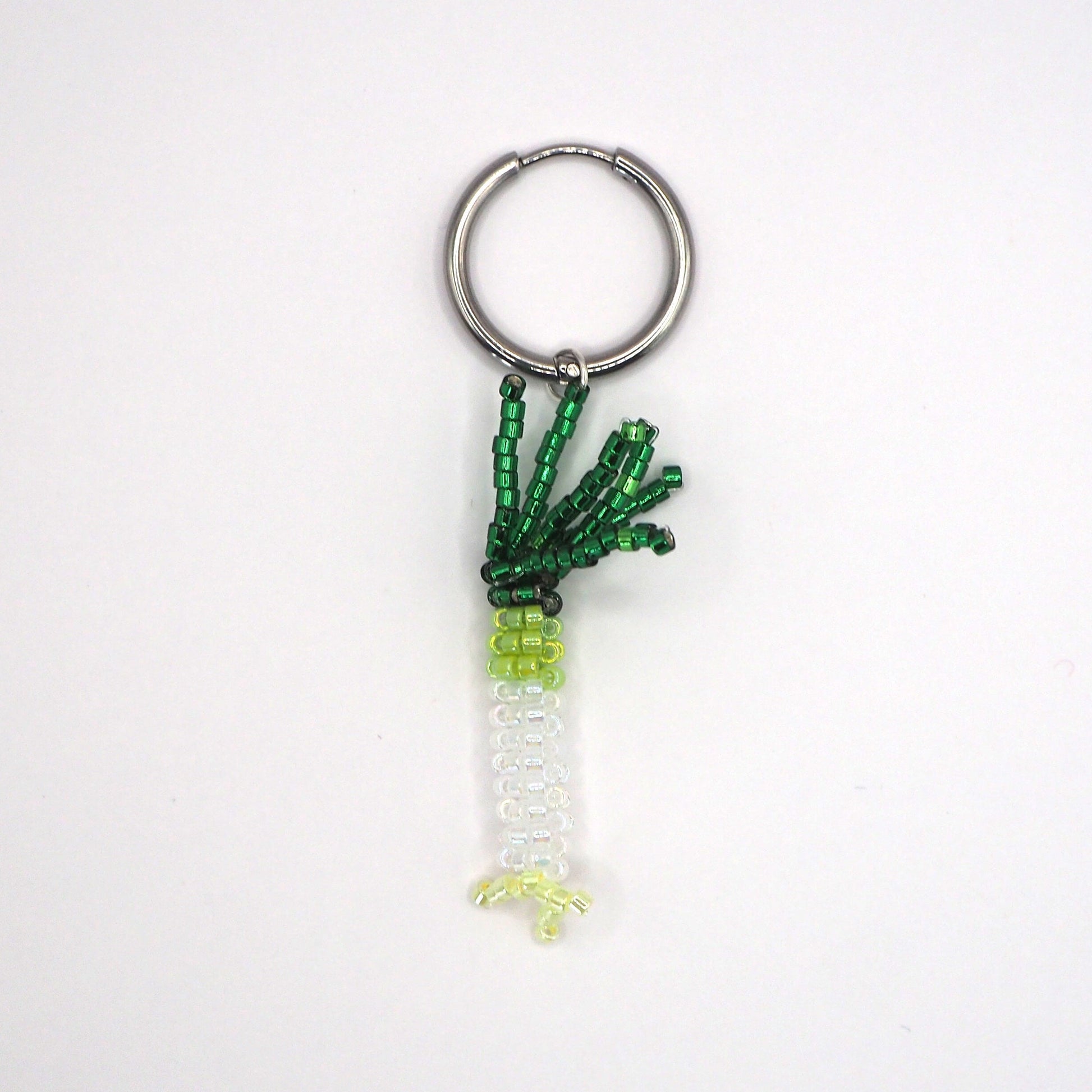 Petite créole en acier inoxydable doré à l’or fin ornée d’un petit poireau en perles Miyuki (perles en verre japonaises) fabriqué à la main dans mon atelier parisien pour un look frais et vitaminé !