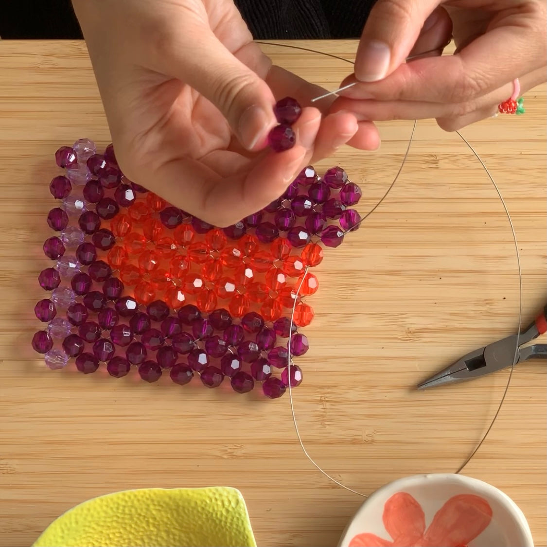 Une pochette-portable c’est 2 heures et demi de travail de «tissage», 500 perles, une quinzaine de mètres de fil câblé, de la patience et du love !